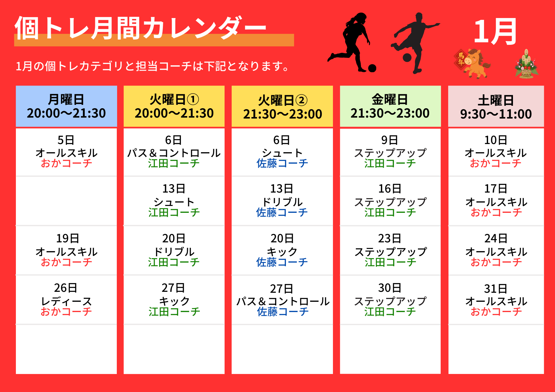 1月の個トレは以下のスケジュールで各コーチが担当致します。